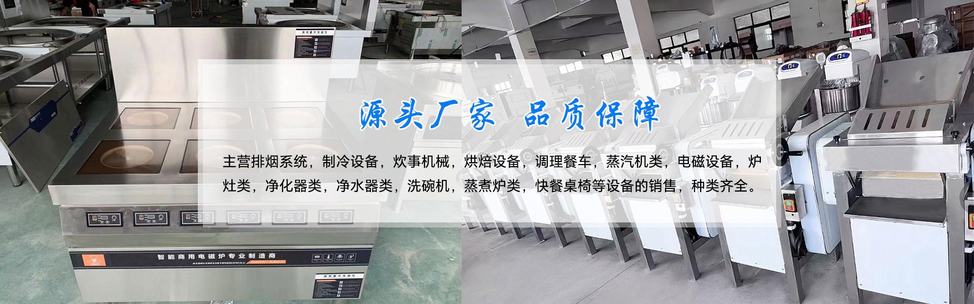 公司主營排煙系統(tǒng),制冷設(shè)備,炊事機械,烘焙設(shè)備,調(diào)理餐車,蒸汽機類,電磁設(shè)備,爐灶類,凈化器類,凈水器類,洗碗機,蒸煮爐類,快餐桌椅等設(shè)備的銷售,種類齊全。